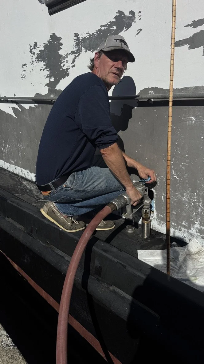 The labels on the hard lines in the engine room turned out to be courtesy of the former owner and wrong and the space between the gravity pulloff on the side of the built in tanks ends up being attached to L shaped pick ups making it even more likely we will pick up sediment. We can feel the sludge when we “dip the tanks” (use a stick that is marked to measure the levels.