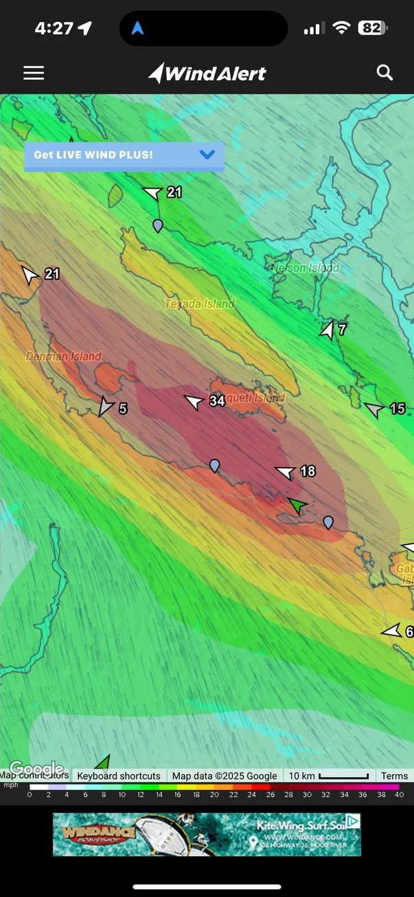 The next push gets us through Race Passage; an infamous tidal gate and often very windy cut. Some of the most drama documented on the R2AK is in this narrow stretch. We are visited by a huge pod of dolphins.